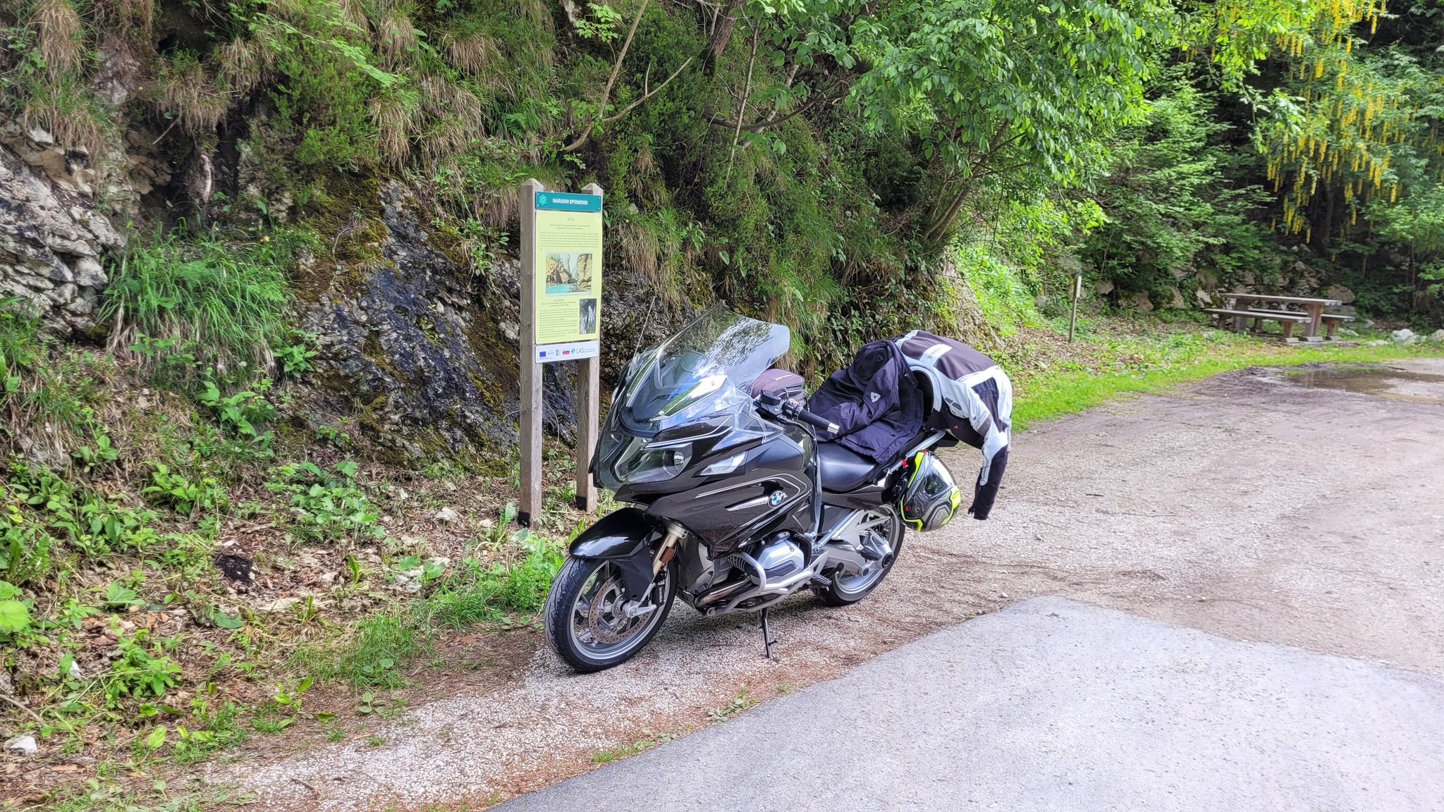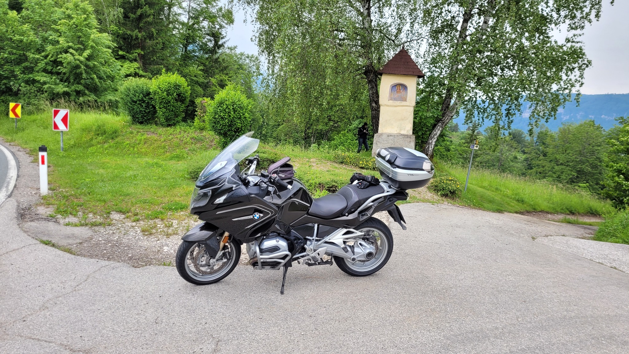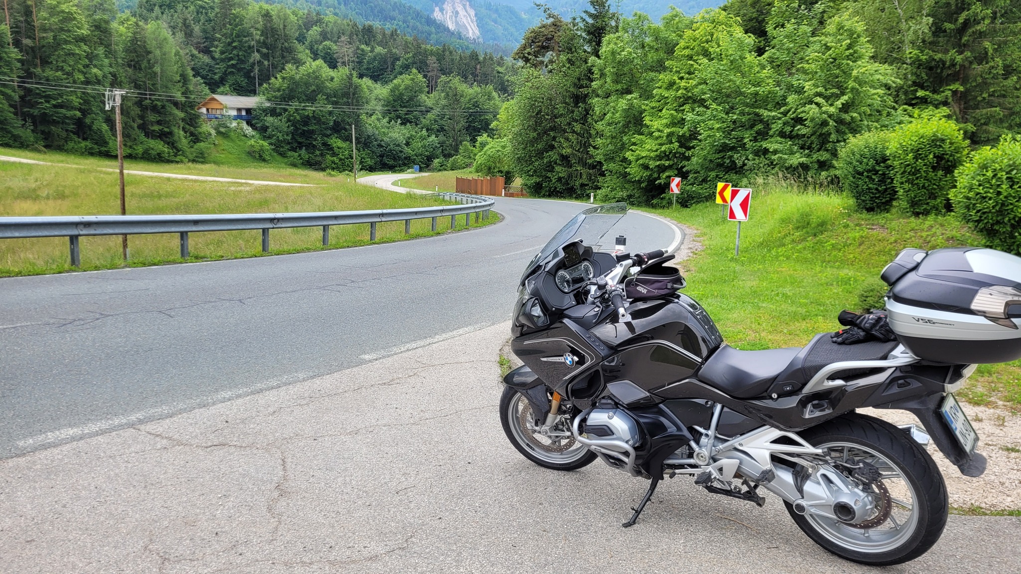 Danes pa ena krajša popoldanska vožnja pred dežjem. Plan je bil na Veliko Planino, ampak je bila cela zavita v oblake, tako da sva potegnila čez Podvolovljek do Solčave in naprej čez Pavličevo sedlo do Železne Kaplje. Da sva obvila nevihto, sva namesto čez Jezersko naredila obvoz čez Korensko sedlo. Super je bilo.