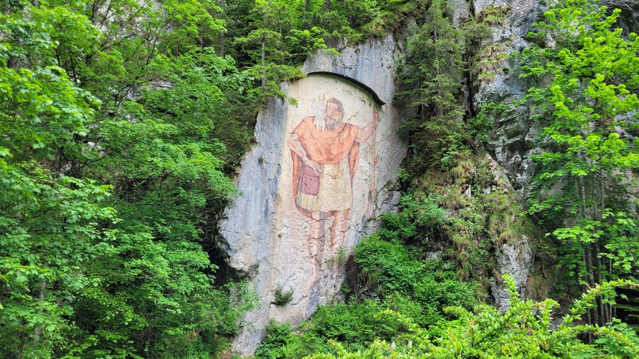 Furmani iz Veleške doline so leta 1861 dali prvič naslikati na skalo dvanajst metrov visoko podobo svetega Krištofa mučenika in zavetnika voznikov.