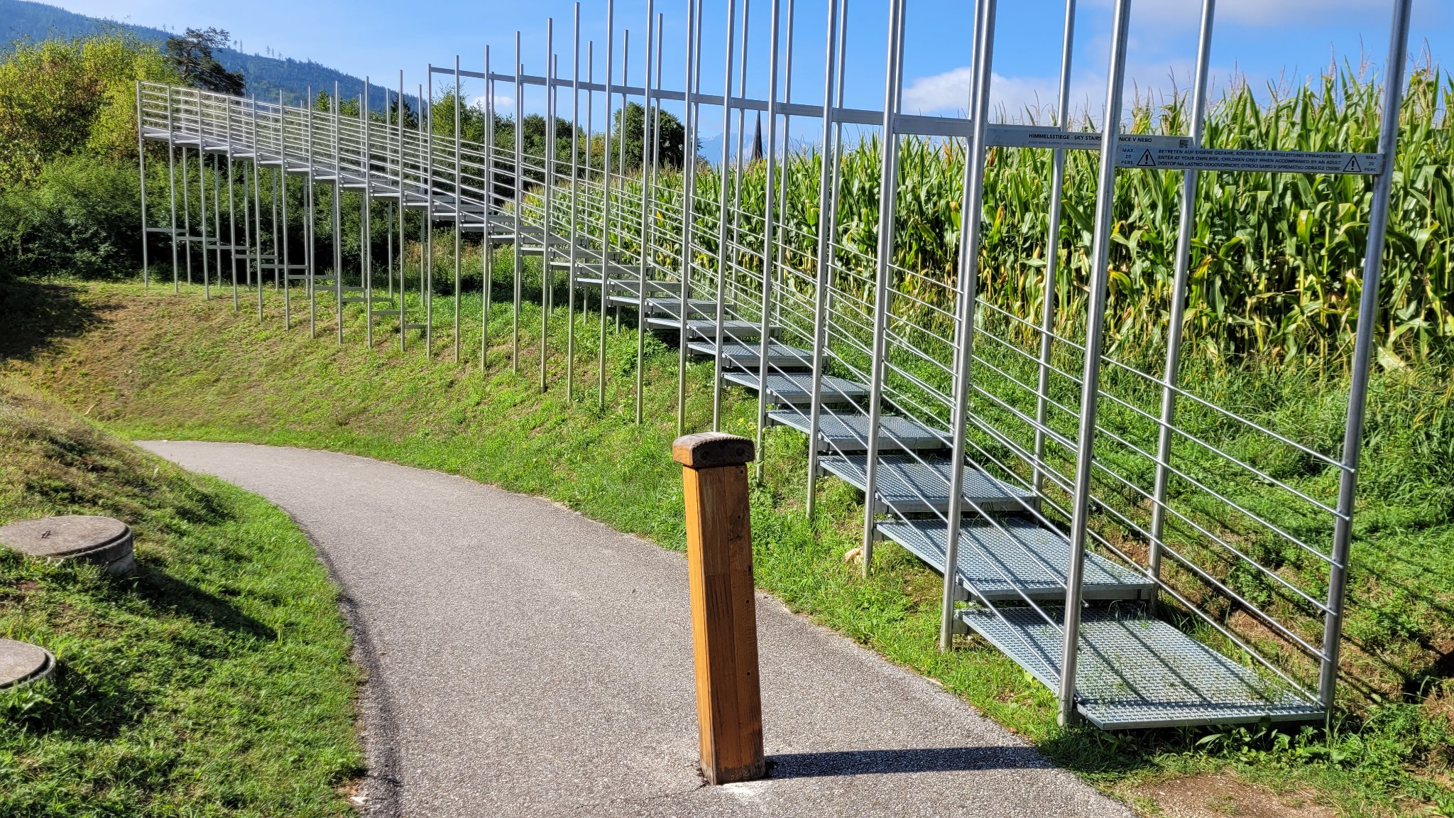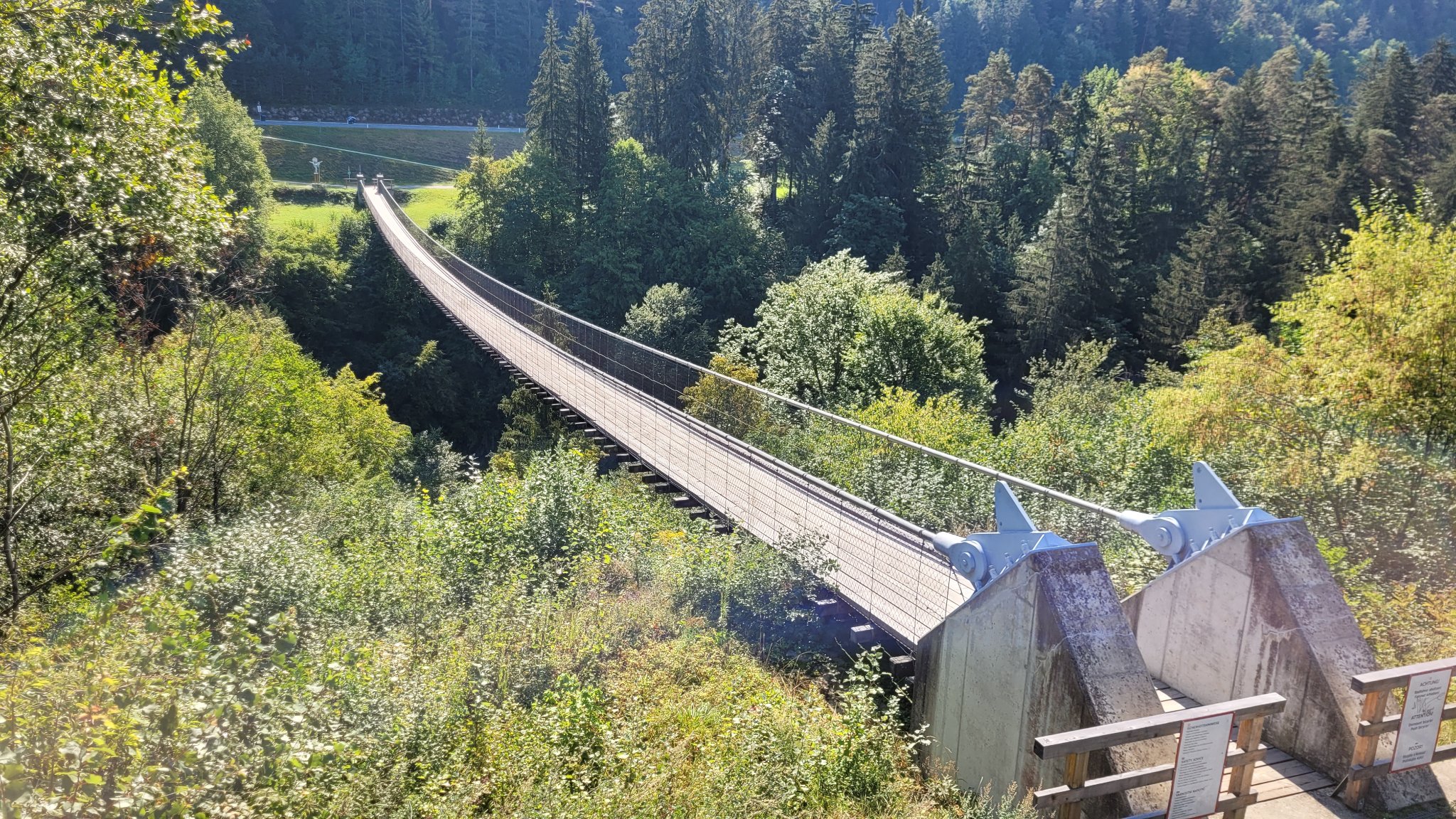 Današnje potepanje po štajerskem koncu in iskanje lepih razgledov iz razglednih stolpov. Pot naju je vodila iz Jesenic čez Ljubelj po avstrijski strani do Dravograda. Malo pred Vidro Vasjo je postavljena impozantna 140 metrov dolga brv za namen prečkanja potoka Feistritz in služi kot kolesarski most. Na drugi strani so tudi zanimive stopnice v nebo iz katerih se razprostira lep pogled na visečo brv.