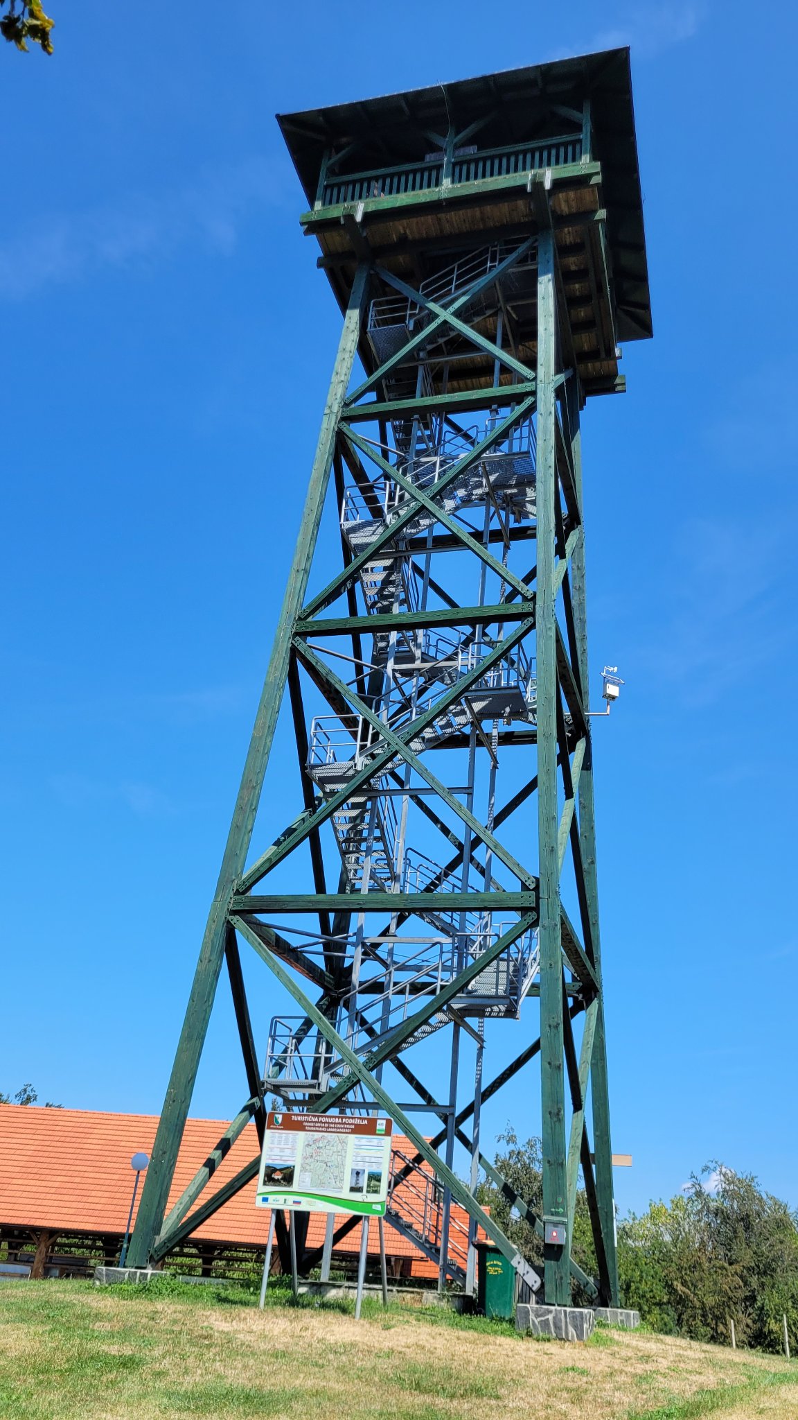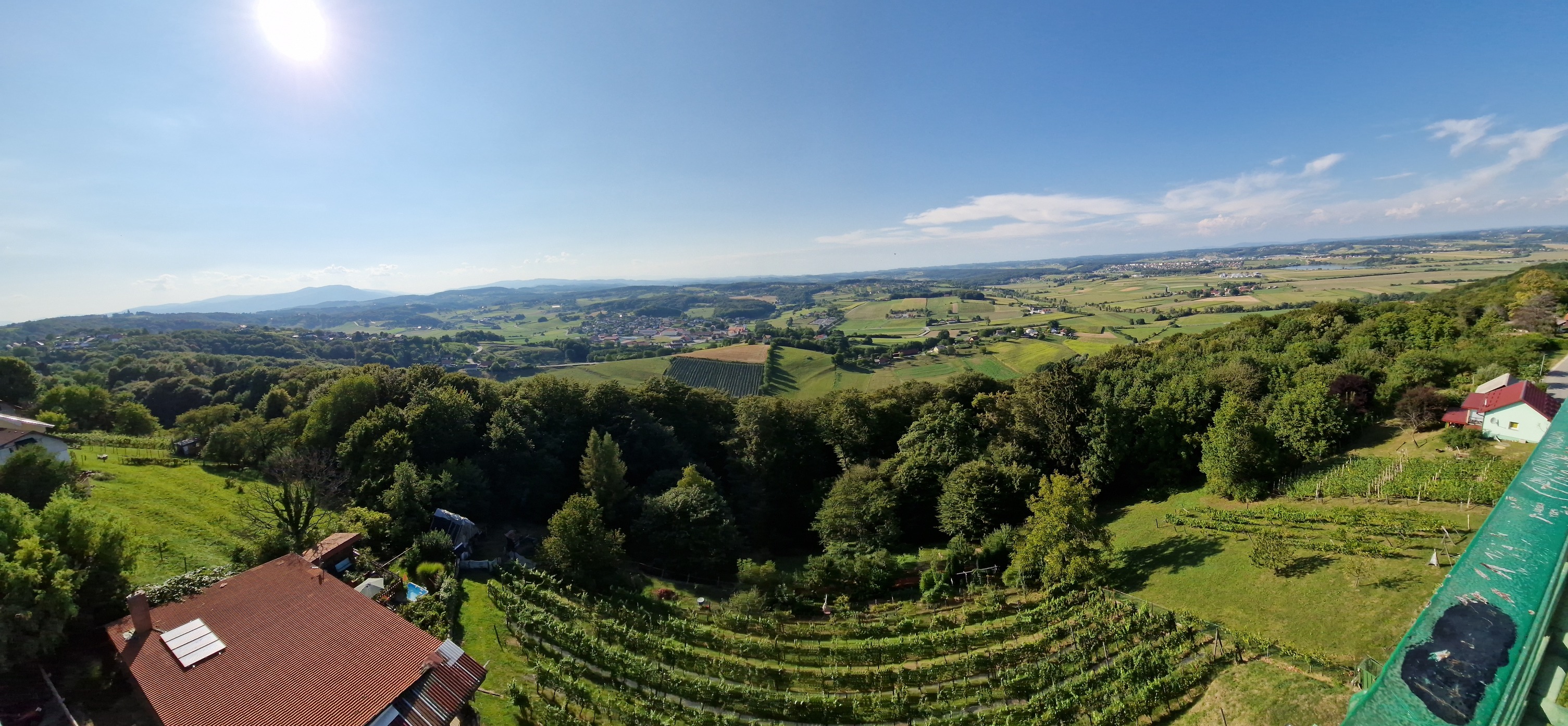 Razgledna ploščat na vrhu ponuja čudovito panoramo, ob jasnem vremenu pogled sega vse do Prekmurja, do Donačke gore, ki leži na meji s Hrvaško ter globoko čez avstrijsko mejo do Koralp.