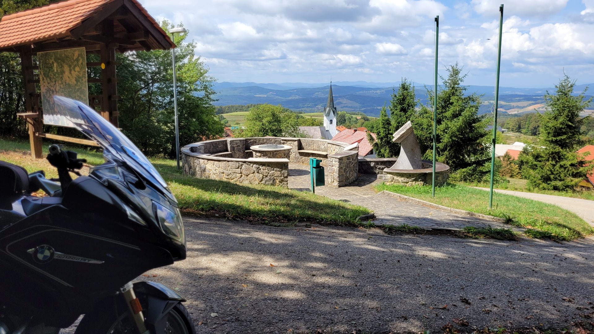 Pot sva nadaljevala skozi Trebnje naprej do obeležja 15. poldnevnika, ki teče skozi Slovenijo.