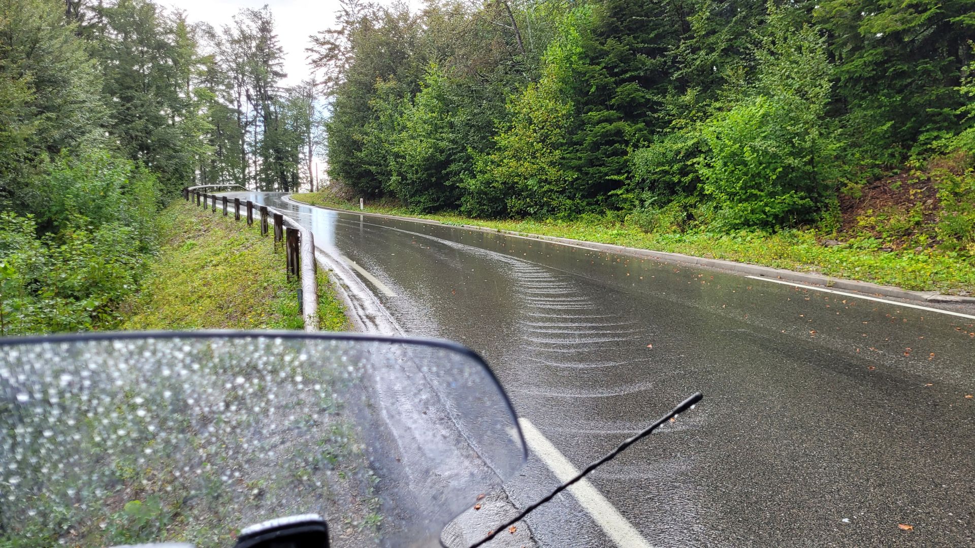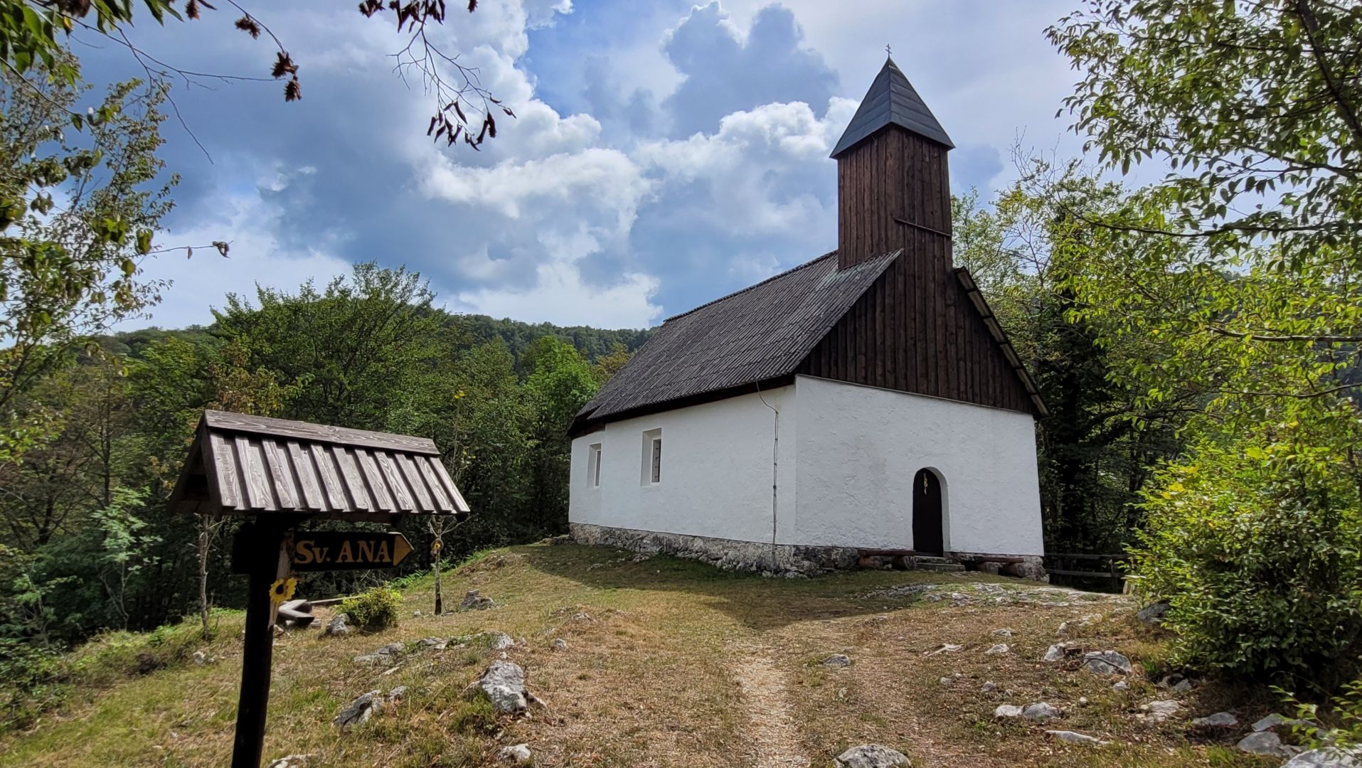 Ogledala sva si tudi cerkev svete Ane v Mirtovičih malo pred Osilnico. Prej obljubljena nevihta, naju je pričakala malo pred Strmo rebrijo "medvedjimi ridami", tako da namesto polaganja ovinkov, sva se hitro stlačila v dežne obleke.
