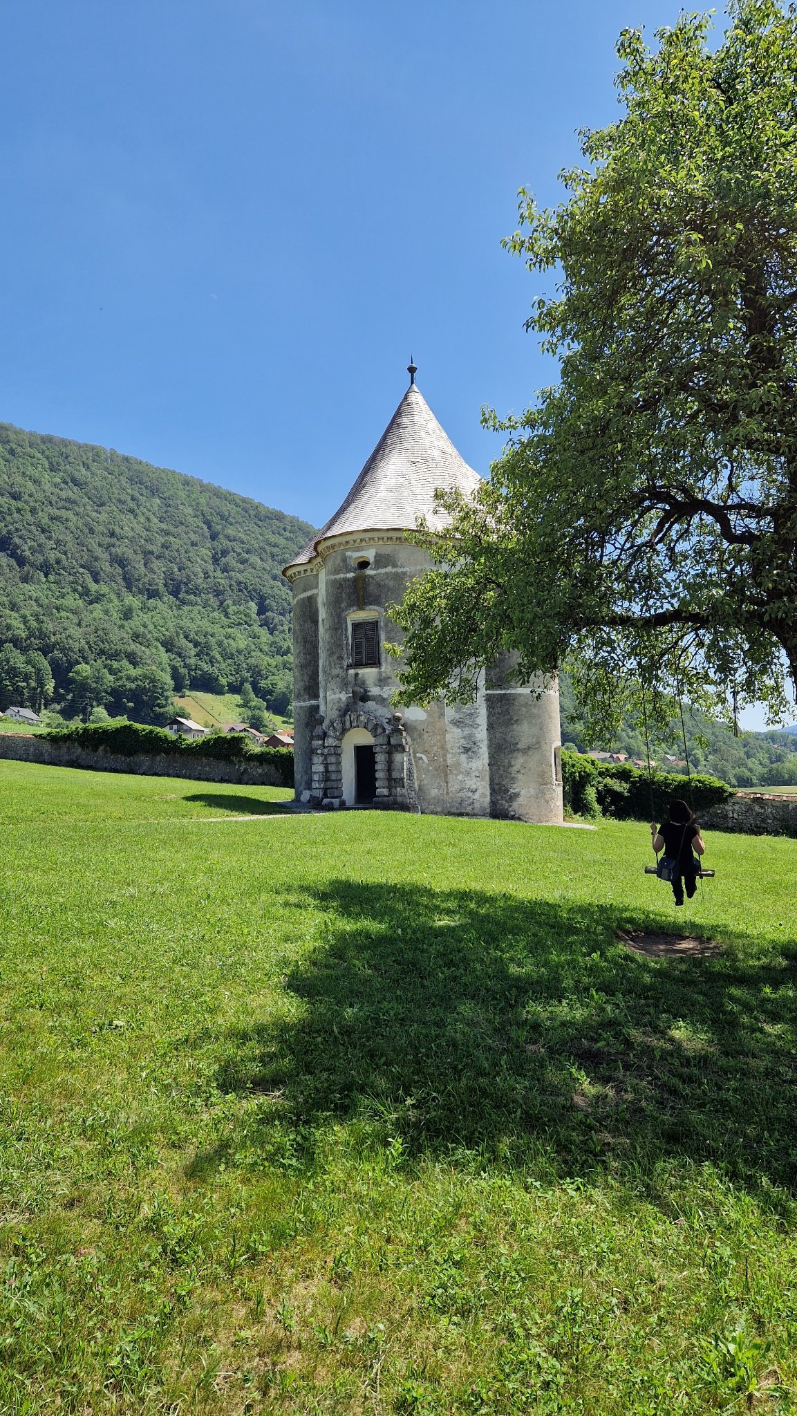 Grad Boštanj je bil povezan z grajsko kapelo z leseno potjo.