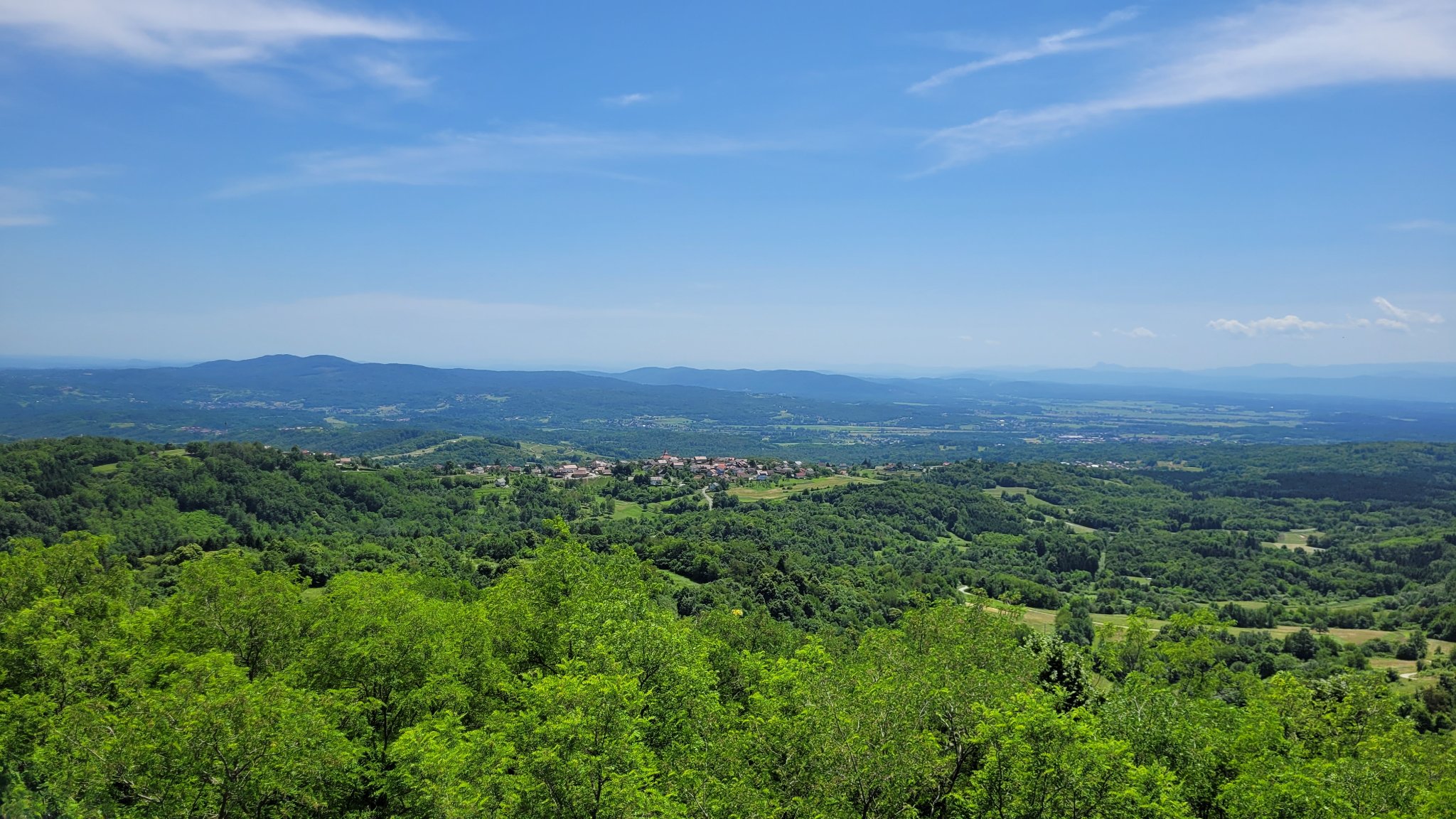 Danes pa sva odkrila dobesedno še en "kotiček" Slovenije, od koder se razprostira razgled na celotno Belo Krajino, del Hrvaške, Klek in Velebitske vrhove. Razgledni stolp na Krašnjem Vrhu. Vroče je bilo.