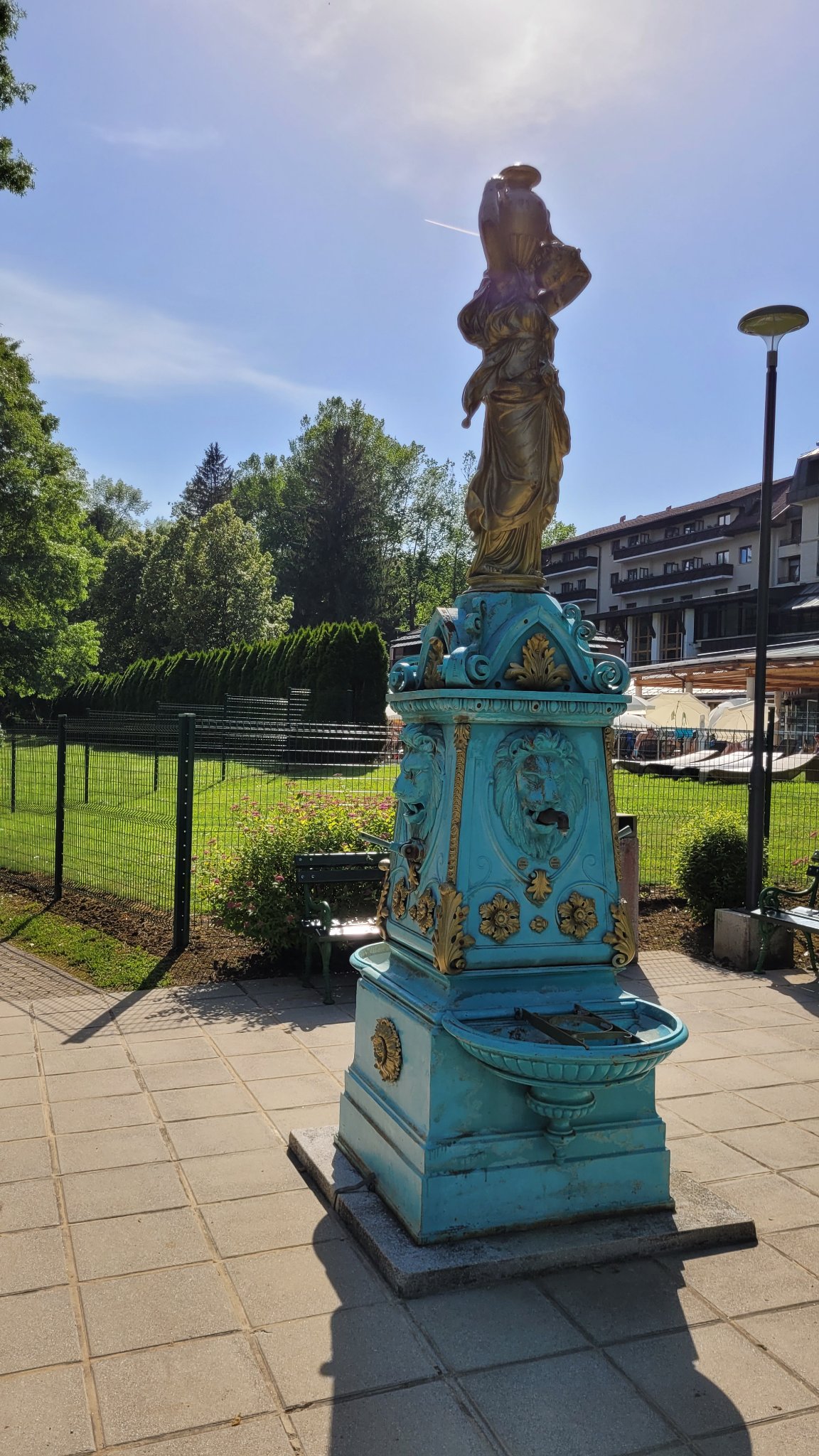 Litoželezni vodnjak s kipom ženske z vrčem, ki stoji v zdraviliškem parku v Šmarjeških Toplicah je bil izdelan v drugi polovici 19. stoletja v eni izmed avstrijskih livarn. V Šmarješke Toplice ga je leta 1926 pripeljal novomeški zdravnik Viktor Gregorić, ki je tistega leta tudi odkupil takratne Toplice. V litoželezni vodnjak, ki je takrat stal na dvorišču med dvema kopelma, je dal napeljaljati pitno vodo.