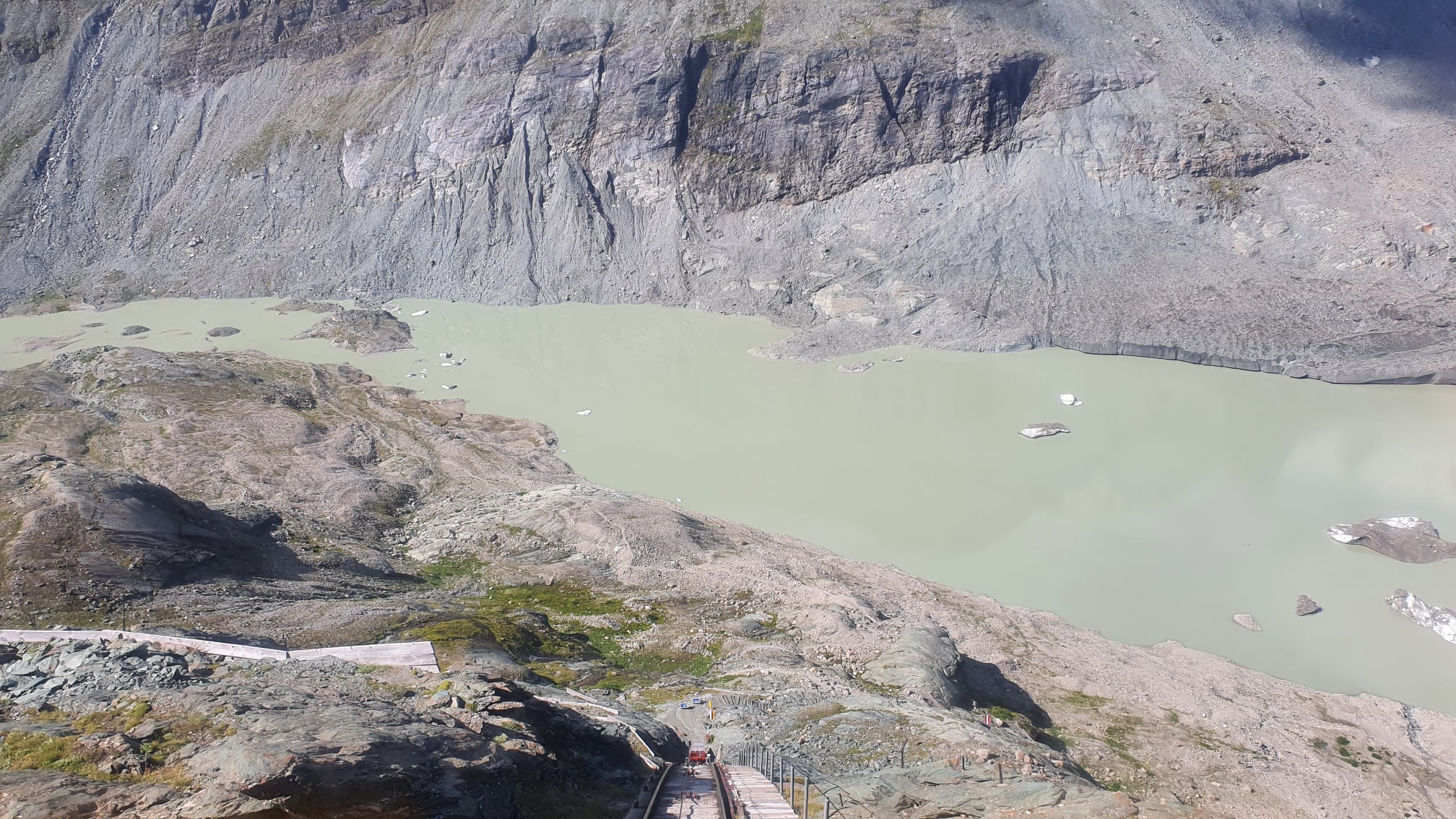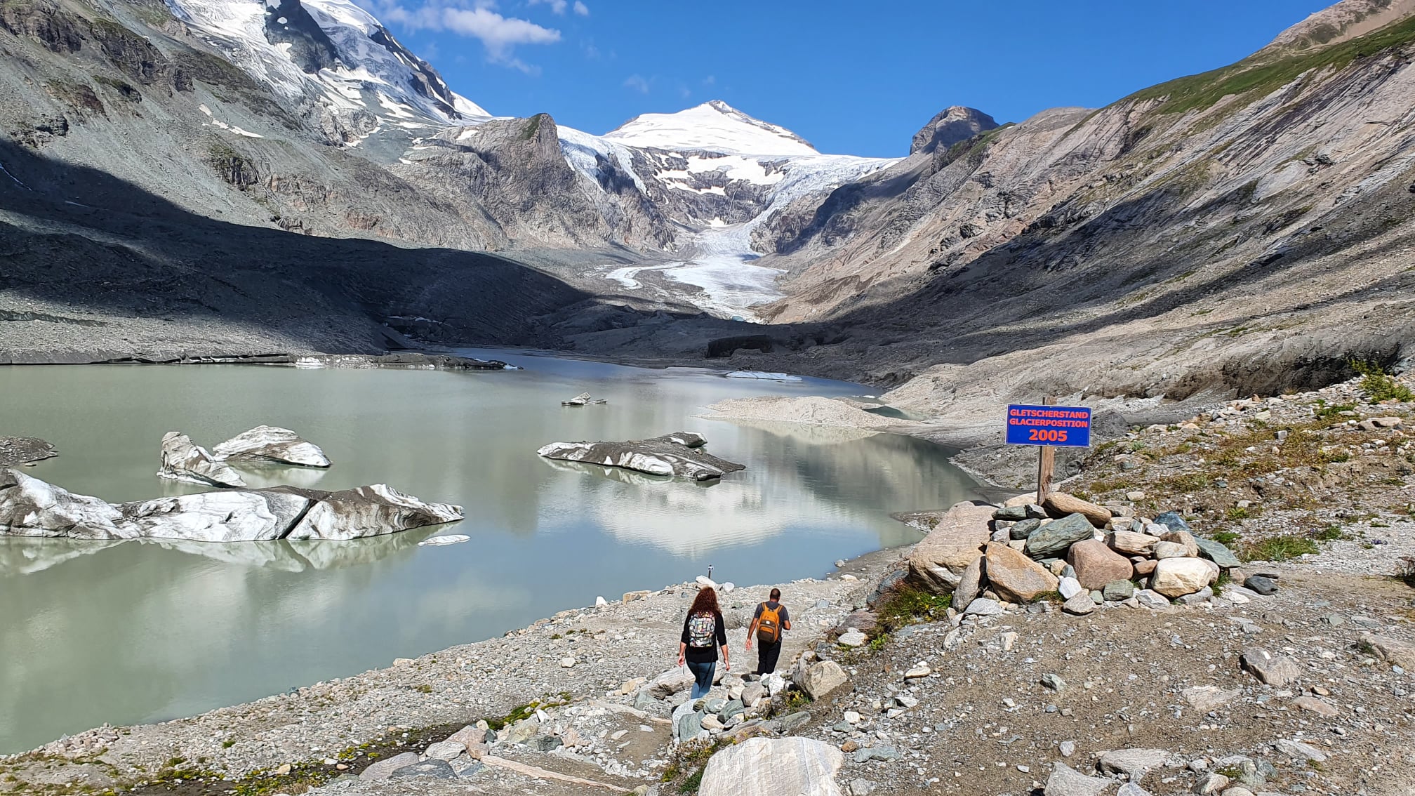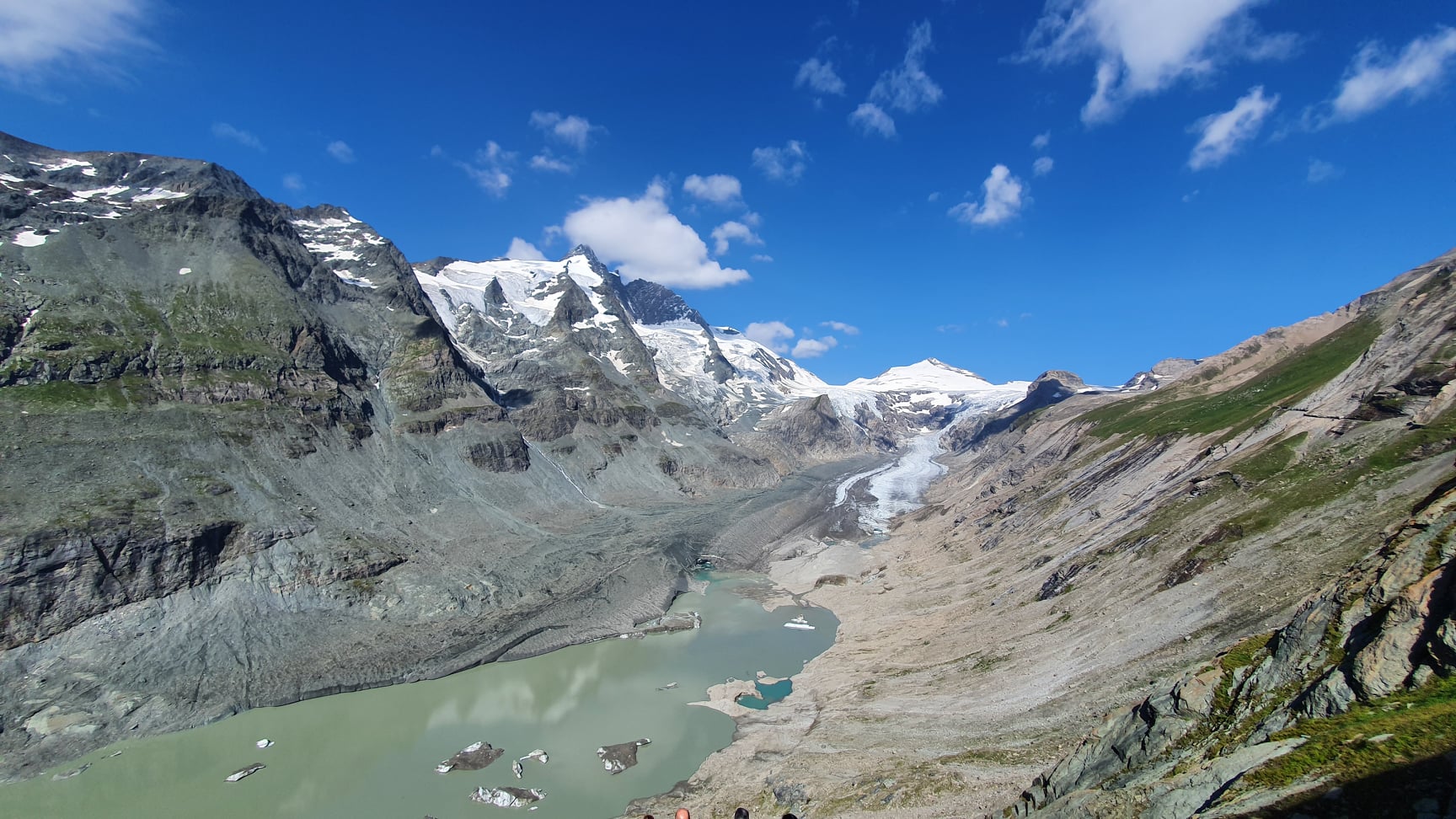 Najboljše se je ohladiti nekje visoko, zato sva na današnji dan izbrala izlet na Großglockner. Štartava ob pol 7 uri iz Jesenic proti Korenskemu sedlu. Brez težav prečkava mejo in spodaj pred Beljakom zavijeva levo proti Podkloštru in naprej mimo Nasfelda. Malo pred Lienzem zavijeva levo v hrib do kraja Sveta Kri, ki je tudi izhodišče za Hochalpenßtrase. Plačava cestnino 27,5 € in se kmalu na začetku vzpona odcepiva na krožišču levo proti Kaiser-Franz-Josefs-Höhe, kjer se nahaja tudi najdaljši ledenik v Avstriji in vzhodnih Alpah. Dolg je približno 8,4 kilometra. Leži v skupini Glockner v pogorju High Tauern na Koroškem, tik pod avstrijsko najvišjo goro Grossglockner. Lepo vzdrževana cesta ponuja prekrasne poglede na razgibano gorovje in infrastrukturo ob njej. Pri Ledeniku vozi tudi kabelska tirna žičnica do ledenika. No vsaj leta 1965 je peljala do ledenika, sedaj pa se je zaradi ogrevanja ozračja ledenik umaknil že več kot 550 m v globino, tako da je potrebno premagati kar nekaj stopnic. Navzdol je bil sprehod prijeten, nazaj pa v motoristični opremi prilično zahteven in naporen. Žalostno je opazovati table, ki so postavljene po 5 letnih obdobjih ob poti, do kam je segal ledenik. Prisopihava nazaj do kabelske tirne žičnice, ki naju popelje nazaj na vrh, kjer sva imela parkiran motor. Na ledeniku sva se vsega skupaj zamudila skoraj uro in pol. Pot nadaljujeva po isti poti nazaj do krožišča in naprej po glavni panoramski cesti. Na hitro narediva ovinek na Edelweisspitze, kjer je tudi najvišja točka najinega izleta (2571 n. m.). Cesta je tlakovana s kockami, ozka in zelo prometna. Tudi ta cesta je slepa, zato se po isti vrneva nazaj na glavno in nadaljujeva s spustom v dolino. Spodaj pri plačilnih hišicah zavijeva levo proti Radstatu, nato proti Obertauern (1630 n. m.) enemu izmed večjih smučarskih središč v Avstriji in Turracher Höhe (1795 n. m.), kjer pri jezeru narediva krajši postanek. Pot zaključiva preko Celovca, mejnega prehoda Ljubelj nazaj proti domu. Dnevni števec na koncu pokaže 510 km.