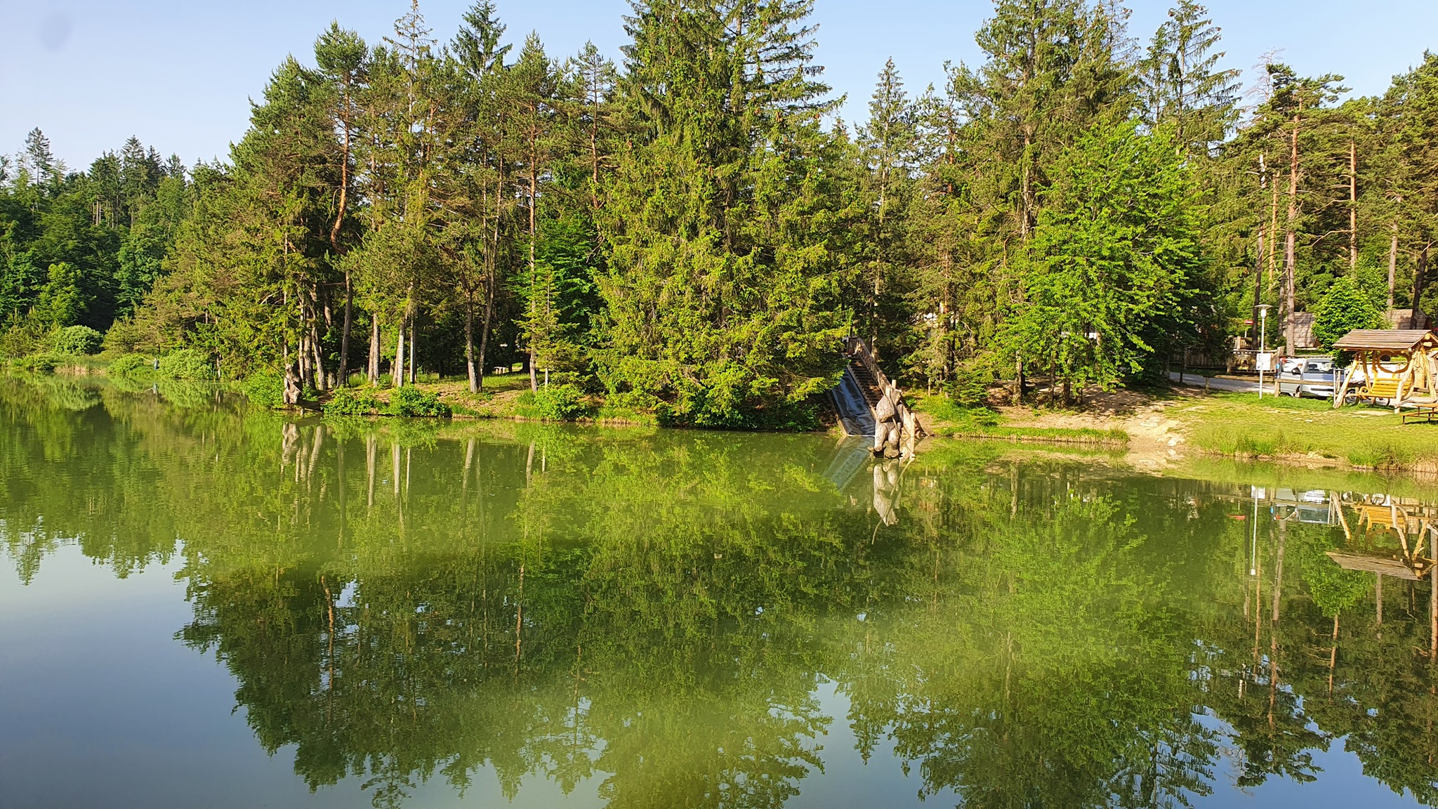Lepo urejen ribnik malo pred Bloškim jezerom