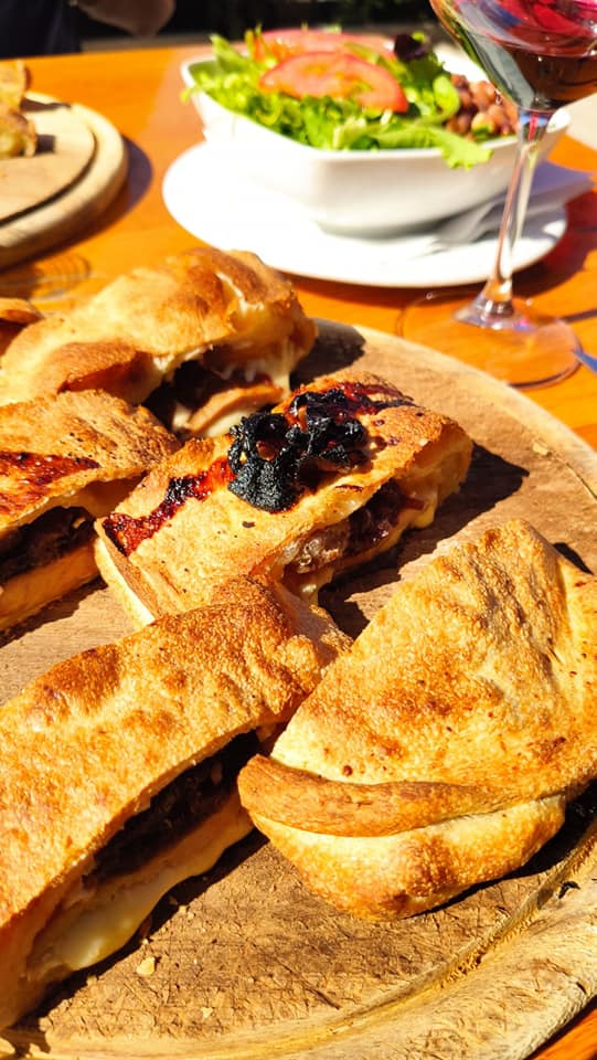 Ombolo - svinjska ribica v testu z čebulno marmelado, prekajeno skuto in sirom ter Ombolo z sirom in jurčki in sirovo omako