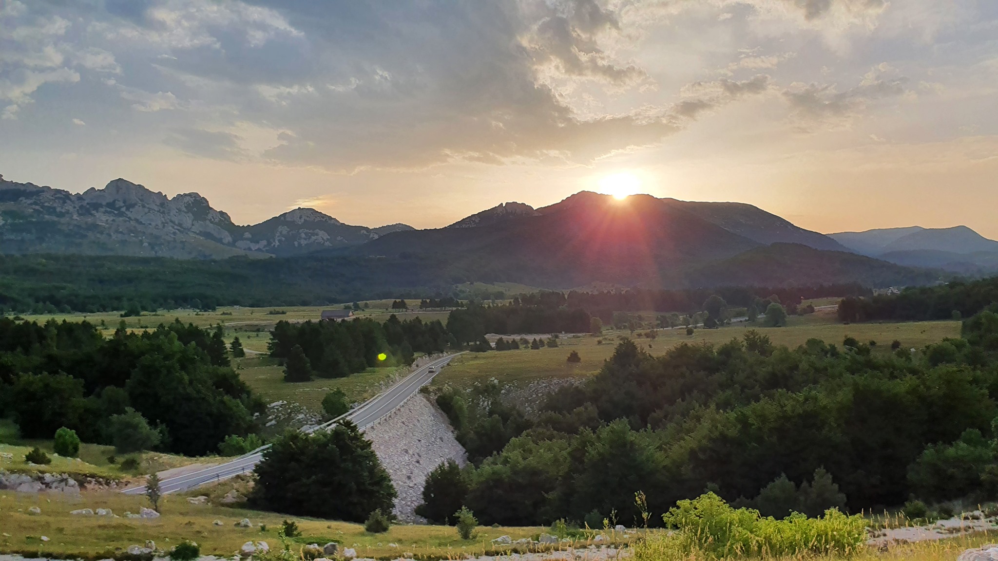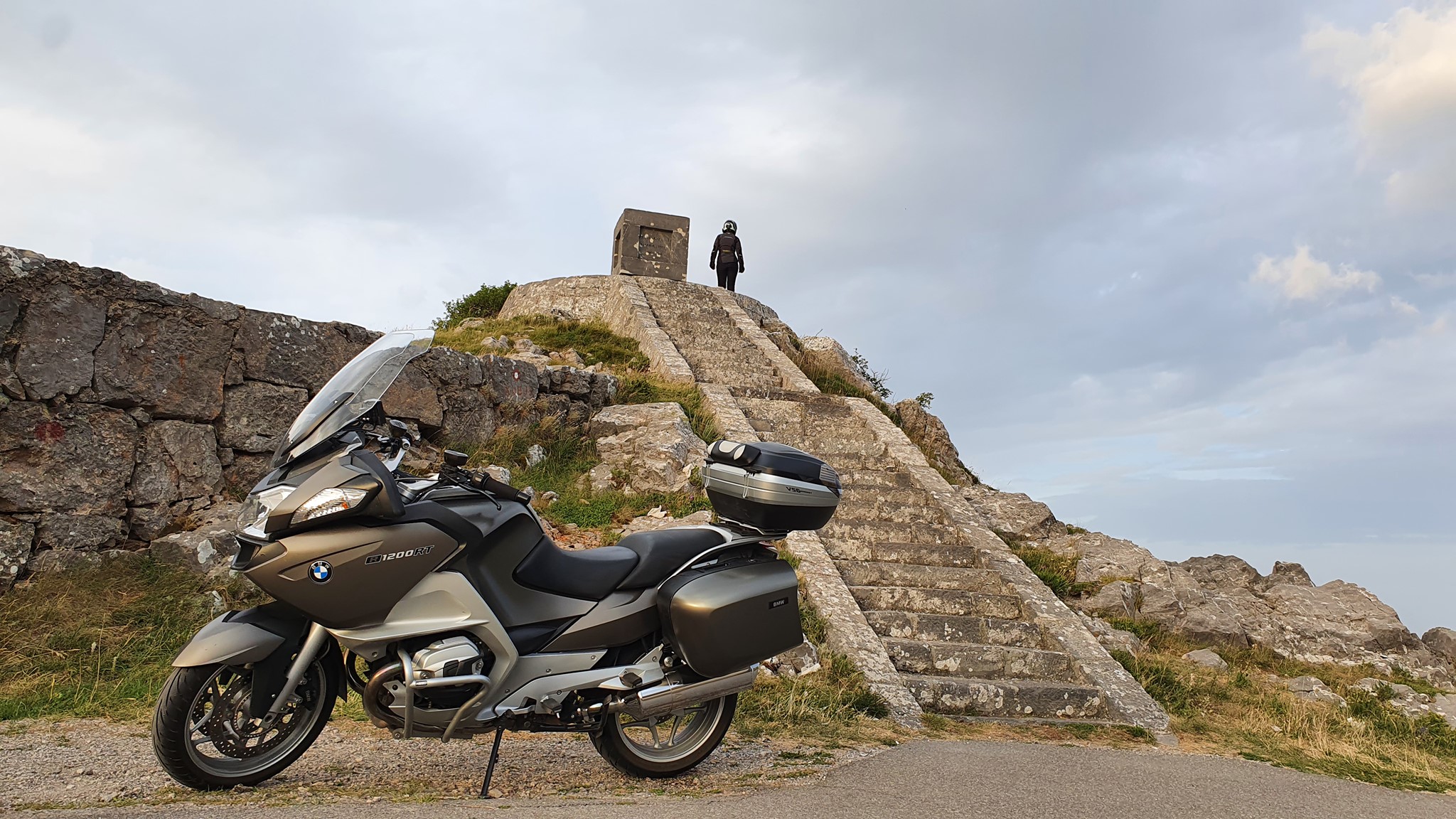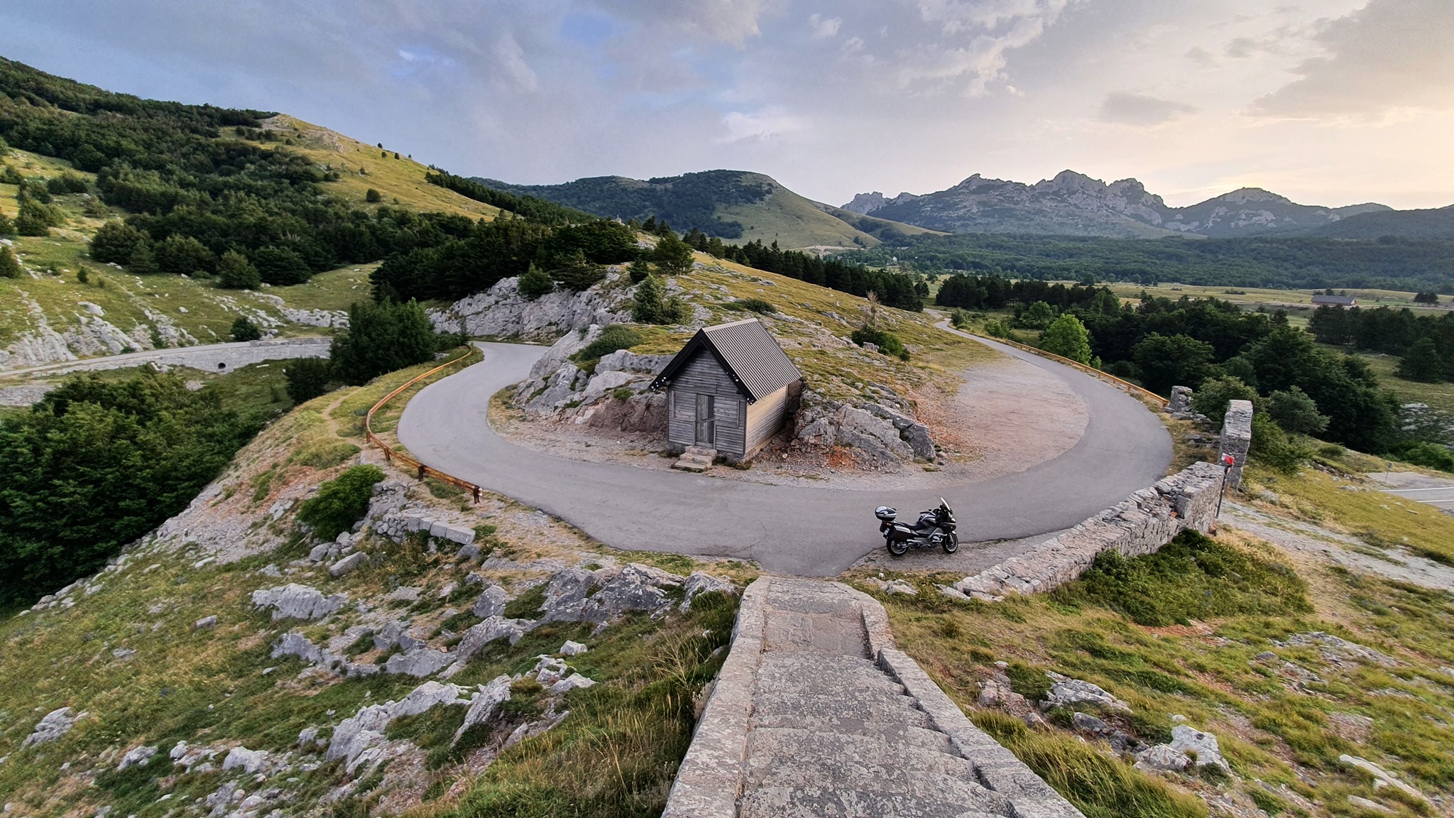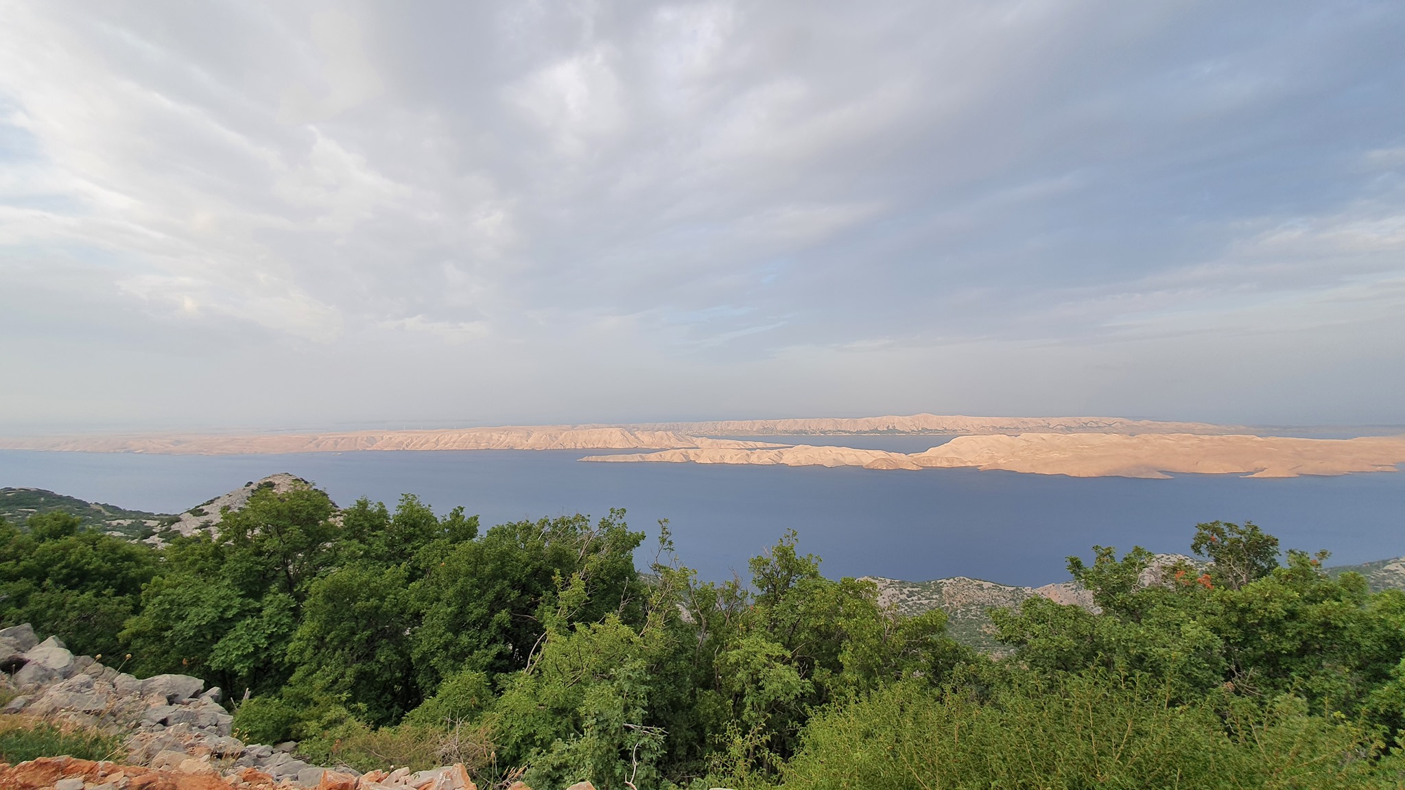 Karlobag, budilka zvoni ob 5:00. Pospraviva apartma, popijeva kavo in na bližnji črpalki dotočiva gorivo. Začneva se vzpenjati po lepi gorski cesti na Velebit, ki vodi proti Gospiču. Cesta že od začetka ponuja lepe poglede na celoten otok Pag, Karlobag in zaliv med Pagom in celino. Nekje po 16 km prispeva do obeležja Kubus, ki je bil postavljen kot spomin na gradnjo ceste Karlobag Gospič. Ravno ob pravem času prispeva po stopnicah do kocke, ko začne sonce sijati in preganjati sence iz otoka Pag. Ker sva bila ta dan namenjena proti Umagu, se po isti poti vrneva na Jadranko in peljeva proti Rijeki. Ustaviva se v Svetem Juriju, kjer si privoščiva rogljiček.