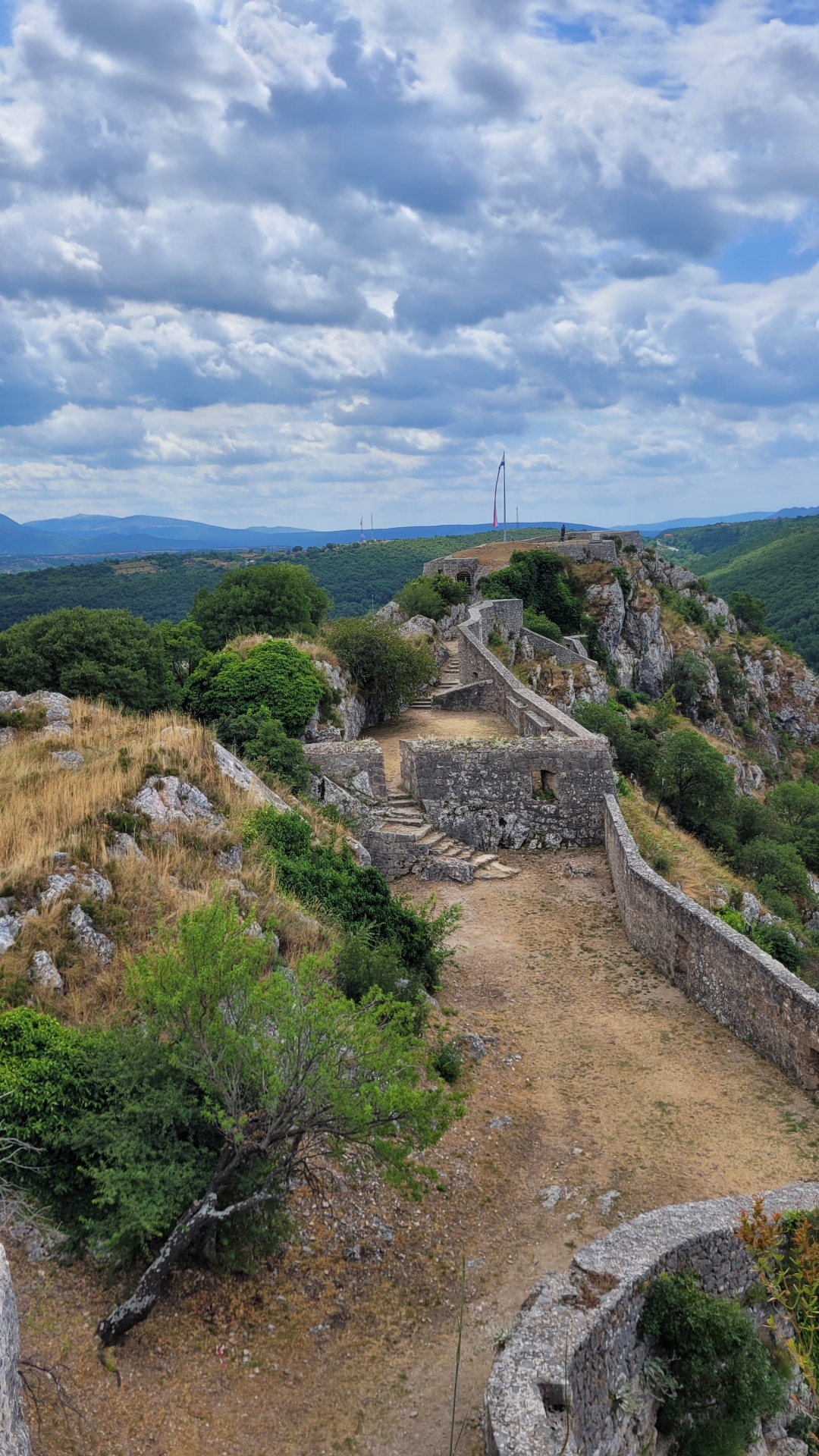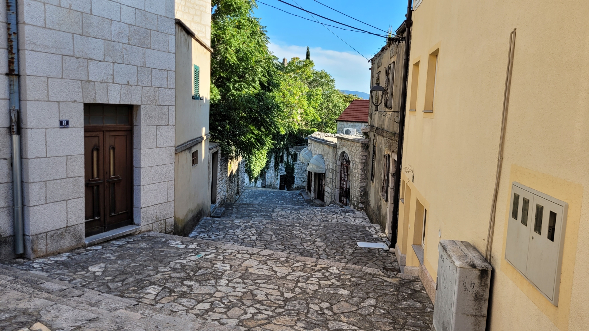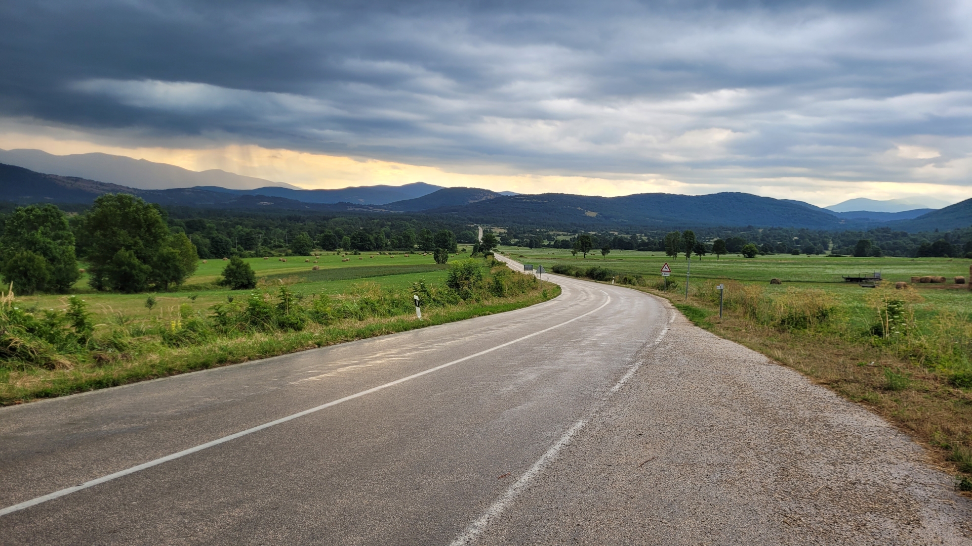 Sobota 29.7. zvečer. Spakirava kufre, pripravim motor, pogledam vremensko napoved in pravim ženi: "Greva spat, jutri morava zgodaj štartat, da prehitiva nevihte, ki se bodo pojavljale že v zgodnjih urah". Nastavim budilko na 3:00 in smuk v posteljo. Še 2x se ne obrnem, že alarm budi. Pogledam skozi okno, glej ga zlomka nevihte napovedane za 5. uro so se začele že ob 3h zjutraj. Zunaj pada, grmi, se bliska. Vržem ženo pokonci in začnem s priganjanjem, da morava hitro štartat in po avtocesti ujeti konec deževja vsaj pri Grosupljem. Zbaševa se v dežjake in šibneva na avtocesto. "Boš videla, kmalu bo nehal padati" in obljubljam suho vreme vsak hip. V Grosupljem naju še vedno pere. V Novem mestu na pumpi se ustaviva, zlijem vodo iz desnega čevlja. Samo v desnem mi je teklo notri, saj imam malo prekratke dežne hlače in ob menjanju mi hlačnica zdrsne navzgor. Tako je lilo, kot da bi se utrgal oblak. Preverim radarsko sliko in pravim, da če pohitiva, ujameva v Karlovcu suho vreme. Drviva čez Gorjance in v Metliki čez mejni prehod. Ni bilo v Karlovcu, niti na Plitviških jezerih, na suho sva prišla šele malo pred Kninom, kjer sva se preoblekla in šla pogledat Kninsko trdnjavo. Na sončku po trdnjavi sva se lepo posušila in malo ogrela. Ampak glej ga hudiča, spet je začelo kapljati. Hitro se zbaševa na motor, tokrat brez dežjakov, saj sem prepričan, da bova dežju ušla. No še enkrat naju je opralo, vendar sva se tokrat so Sinja lepo posušila. Najin današnji cilj je bil Imotski in ogled Prološkega Blata, Rdečega in Modrega jezera. V Imotskem sva v apartmaju obesila obleke na sonce in se peš odpravila do Modrega jezera.