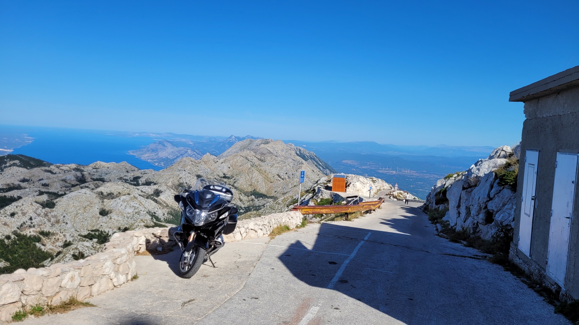 V Imotskem z Bernarda Potočnik spakirava in odrineva proti morju. Skozi tunel Svetega Ilija hitro padeva na obalo Makarske, kjer se iz praktično 0 metrov povzpneva na 1761 m visok hrib Sveti Jure. Za vstop v park Biokovo potrebuješ vstopnico za motor in dodatno še 2 osebi na njem. Skupaj nanese 16 eurov. Cesta je v slabšem stanju, polna konjskih fig in ostale pločevine. Nekje na polovici poti je skywalk Biokovo, kjer se odpira lep pogled na Makarsko in okoliške otoke in polotoke. Za boječe se višine ni. Še lepši razgled in slikovita cerkvica pa čakata na vrhu Svetega Jureta. Podobo raja nad oblaki kazi le umetno umeščen oddajni stolp. Nato sva se odpravila preko mejnega prehoda Prolog in Mostarja v Konjic, kjer sva imela ob 15. uri rezerviran ogled Titovega Bunkerja. Če vas take stvari zanimajo, je ogled obvezen. Razsežnost in tehnološka naprednost za tisti čas, je res nepredstavljiva. Po ogledu sva se namestila v apartmaju. Kot da tisti dan še nisva imela dovolj vožnje z motorjem, sva na pozno večerjo odšla iz Konjica skoraj 30 km nazaj v Jablanico, saj se mi je zaluštalo eno izmed jagenj, ki so se vrtela na roštilju ob cesti.