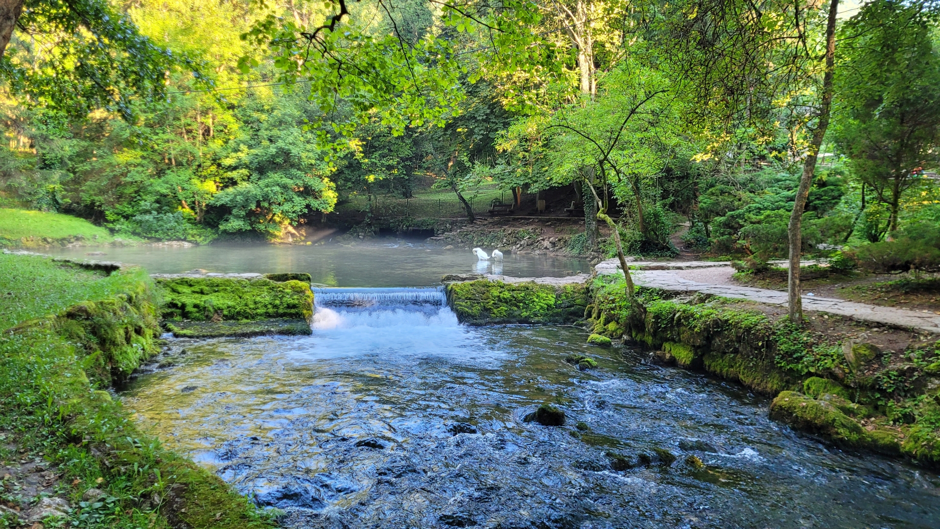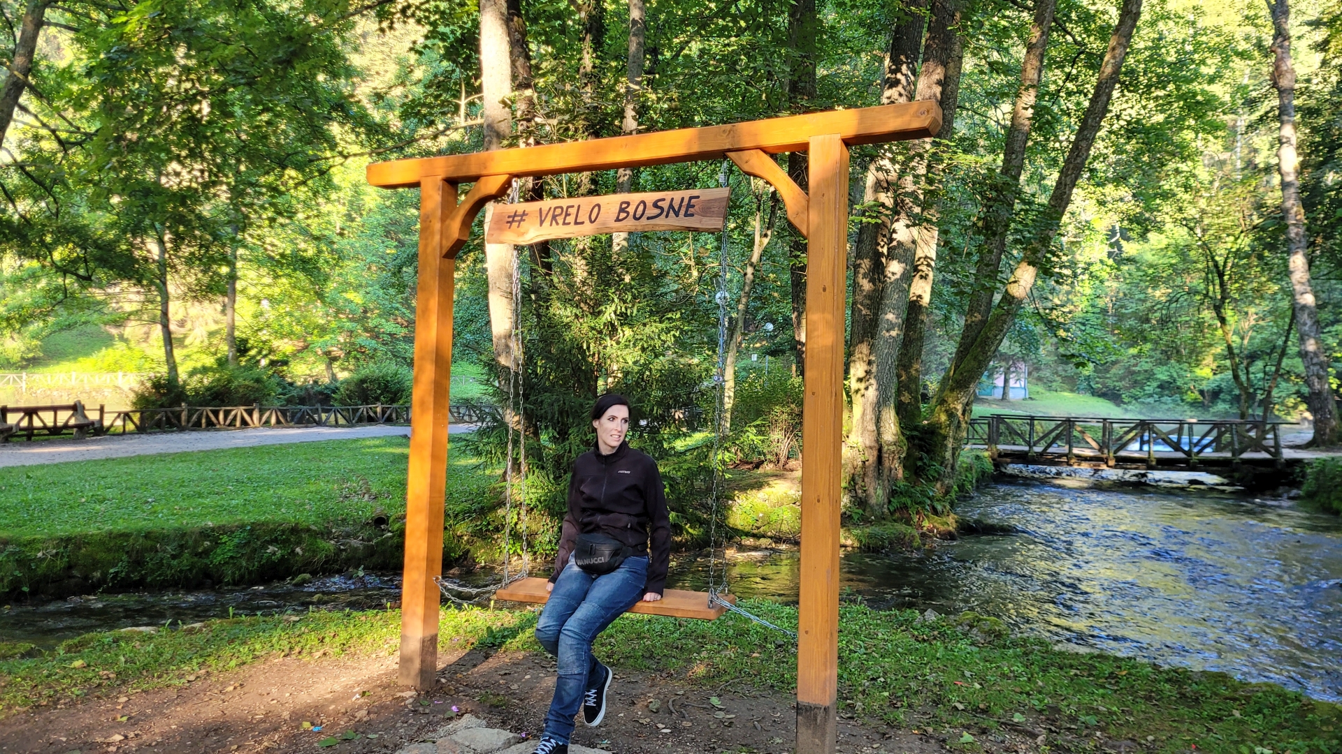 Ker sva danes z Bernarda Potočnik imela pred sabo kar nekaj kilometrov, sva štartala že malo po 6 uri zjutraj. Gazdarica je bila prijazna in nama na mizi pustila 2 lunch paketa z ogromnim sendvičem in poli salamo, sokom, banano in jabolkom. Opremljena za na pot sva krenila proti Sarajevu, kjer sva si ogledala izvir Reke Bosne. Park se odpre šele ob 8 uri in pobirajo vstopnino. Za ta pridne, ki predejo bolj zgodaj, pa vstopnine ni. Prav tako sva imela celoten park čisto zase. Jutranje meglice in vzhajajoče sonce, je dajalo pridih mirnosti in spokojnosti. Napolnjena z energijo in sendvičem s Poli salamo odrineva proti Foči, kjer sva si ogledala še eno čudo Bosne. Peščene piramide. Baje jih lahko najdeš le še nekje v Srbiji, in v Dolomitih v Italiji. Na enak princip je ustvarjen tudi kanjon Colorado v ZDA. Iz Foče naju je pot vodila naprej do Višegrada, kjer sva se ustavila na kavi v Andrić Gradu. To je kamnito "umetno" zgrajeno mesto po ideji režiserja Emila Kustrice. Po kavi sva prečkala mejo s Srbijo in se skozi Mokro Goro in narodni park Tare dolgo vozila proti Bijelini. Ob reki Drini je ogromno nasadov robid. Hiše ob cesti so stare slabo vzdrževane in na splošno se zdi, da je ta predel Srbije ob meji z Bosno zelo reven. Ta dan sva imela rezerviran luksuzni apartma z garažo. Tam se stuširava, preoblečeva in že peš odhitiva na ogled Etno vasi Stanišići. Zdi se, da se je ustvarjalec te vasice malo oziral po Avstrijskem Minimundusu. Ampak to se mi le zdi. Mlinčki, mini železnica, mostovi, brvi, voda, živali ter ogromna restavracija, kjer sva si malo utrujena privoščila pozno večerjo.